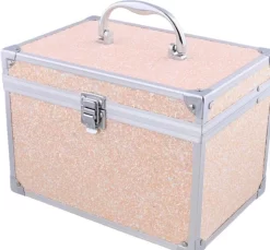 Merkloos Beauty Vanity Case – Make Up Koffer – Roze Met Glitters – Met Spiegel En Extra Opbergvak
