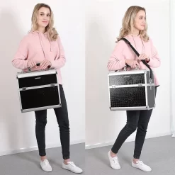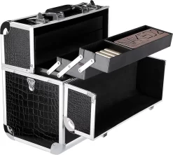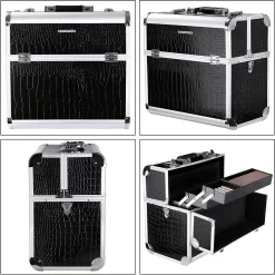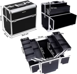 - Veelzijdig inzetbaar – ideaal voor make-up artiesten, friseure, nagel-technicus, nagelsalon, beauty Center, en een kapsalon geschikt. Deksel afsluitbaar met 2 klappschlössern. 2 sleutels daarbij