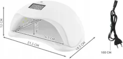 De nieuwste Generatie LED-lamp 48W zorgt voor snel uitgeharde nagels in de vorm van gel of andere coatings. De LED technologie maakt de lamp betrouwbaar, snel en hard de gehele nagel gelijkmatig uit. De lamp bestaat uit twee delen: een koepel en een standaard, die we overlappend met elkaar verbinden. Aan de voorzijde bevindt zich een display met een timer en knoppen voor het selecteren van de uithardingsvariant, namelijk 10s, 30s, 60s en 99s.