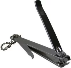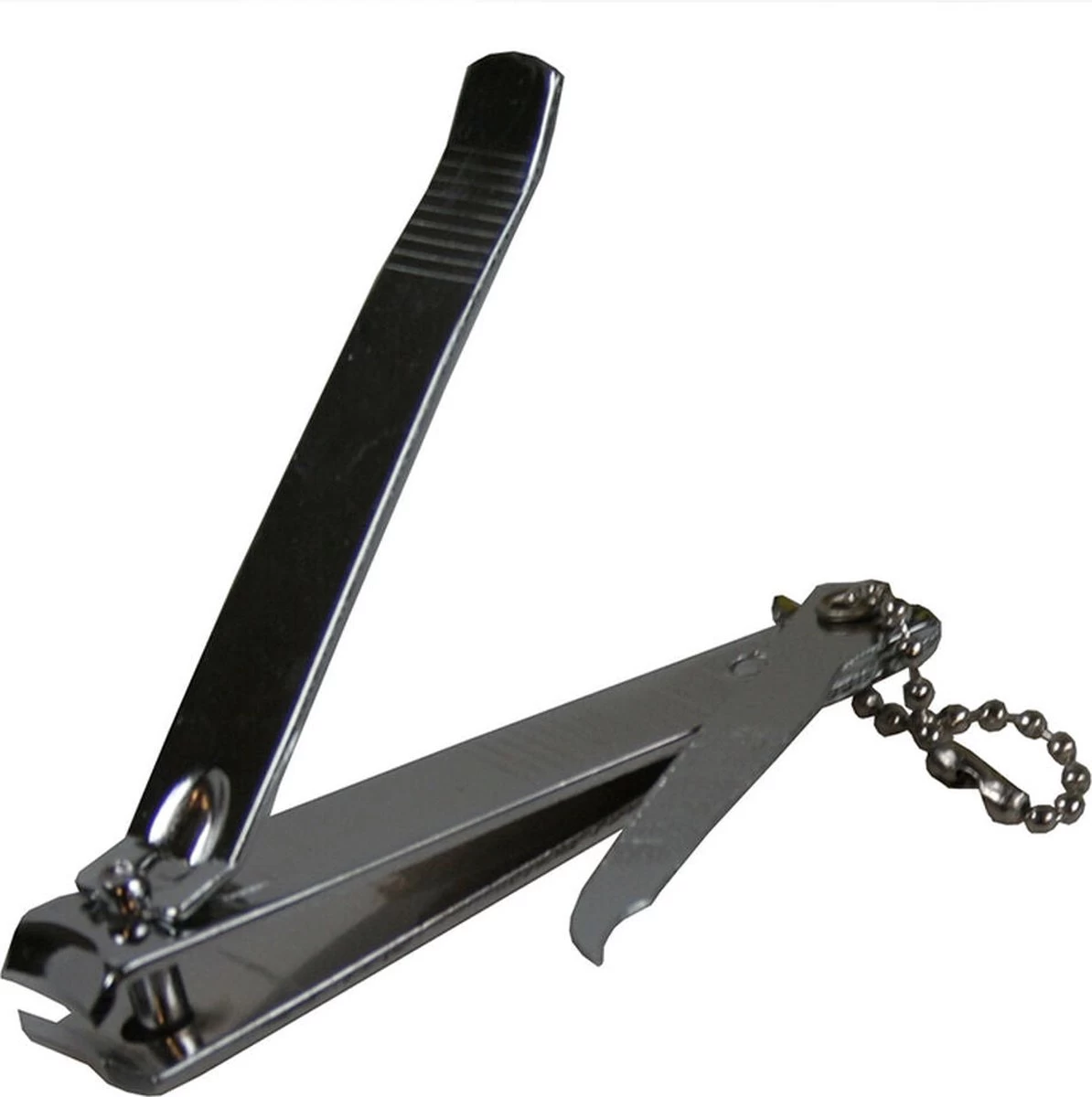 - Robuuste nagelknipper met vijl voorzien van ketting voor bijvoorbeeld aan de sleutelhanger.