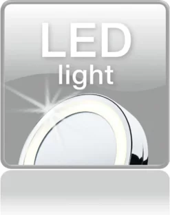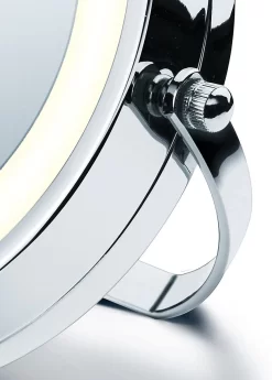 Deze dubbelzijdige Beurer cosmeticaspiegel, de BS59, is ideaal voor het epileren van uw wenkbrauwen, het aanbrengen van make-up, het inbrengen van je lenzen, enzovoort. De spiegel kan gebruikt worden als vrijstaande spiegel, maar het is mogelijk om hem aan de muur te monteren als wandspiegel. Het is eenvoudig om de spiegel van de muurbeugel af te halen, zo heb je altijd de keuze hoe en waar je de BS59 gebruikt. Deze spiegel is voorzien van 2 met LED verlichte spiegel oppervlakken, de ene zijde toont je gezicht in het originele formaat en de andere zijde zorgt voor een vergroting van 5 x. Met zijn soepele 360° kantel design is deze ronde spiegel zeer gemakkelijk in het gebruik.Het licht van de lamp wordt gevoed door 4 AAA batterijen, deze worden meegeleverd.Kenmerken van de Beurer BS59- 2-in-1 cosmeticaspiegel- Zwenkende spiegels- Normaal en 5x vergroting- Heldere LED-lamp- Hoogwaardige chroomafwerking- Afmetingen: 24,5 x 28 cm- Gewicht: 790 g- Diameter van spiegel 11 cm- Eenvoudige montage op de muur- Inclusief 4 AAA-batterijen