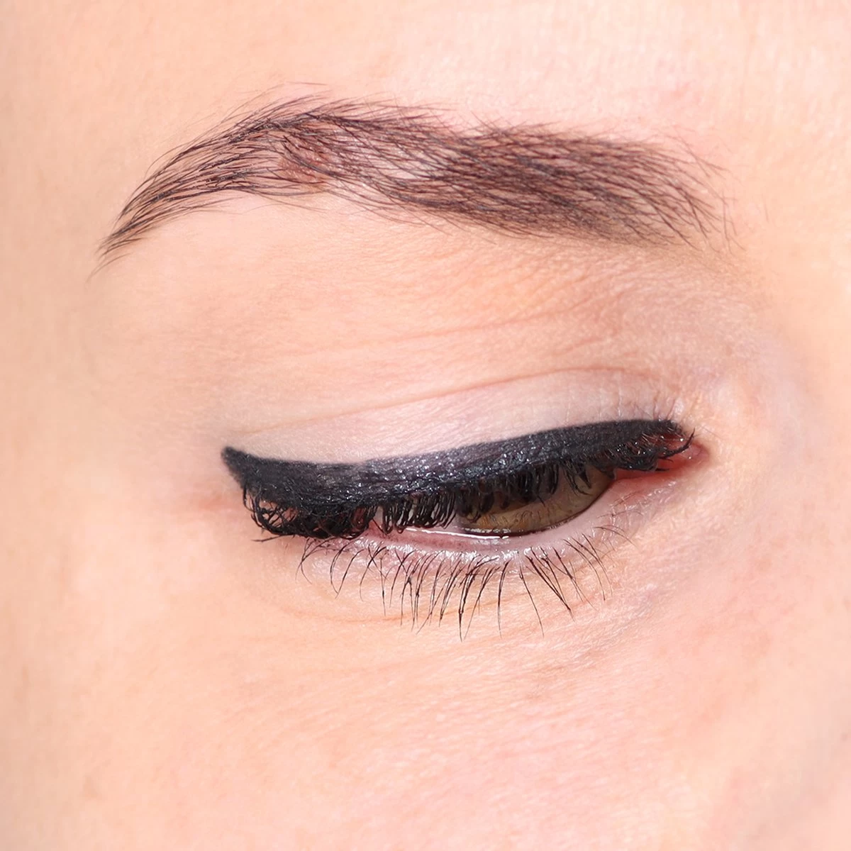 – Zet het potlood zo dicht mogelijk tegen je wimperrand aan en trek langzaam een dunne lijn van de buitenste ooghoek naar binnen toe.