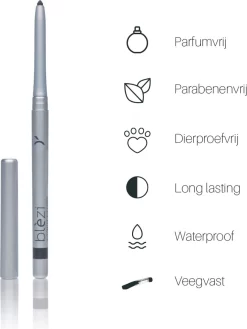 Blèzi Automatic Eye Pencil maakt van je ogen prachtige blikvangers. Het oogpotlood geeft een veegvast en watervast lijntje met een sprankelende metallic finish. Door het handige ‘twist-up’ systeem is het potlood makkelijk in gebruik en de crèmige textuur maakt aanbrengen heel eenvoudig.