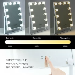 - 12 x 5 Watt LED bulbs met twee lichtstanden voor de perfecte belichting van jouw gezicht