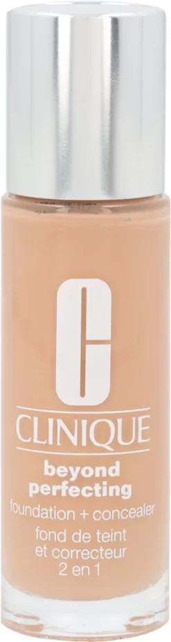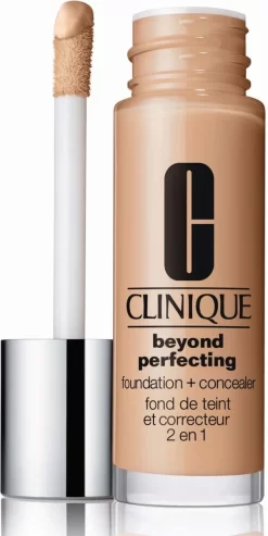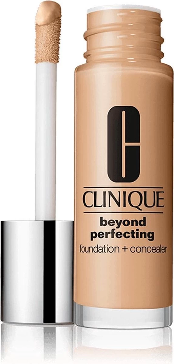 Met de Clinique Beyond Perfecting Foundation + Concealer creeer je een stralende gave huid voor de hele dag door. Dit product van Clinique is een vloeibare foundation en concealer in één, die volledige dekking biedt zonder zwaar te worden. Je kunt de foundation gelijkmatig verdelen of plaatselijk aanbrengen als een concealer. Deze foundation hydrateert en dekt volledig, zonder de poriën te verstoppen of een zwaar gevoel te geven. Blijft de hele dag zitten tot 12 uur lang, resistent tegen zweet en vochtigheid.