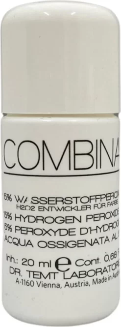 2 cm crème met 5 druppels Combinal Waterstofperoxide 5% vermengen tot een zachte pasta. Afhankelijk van het gewenste resultaat 5-10 minuten laten inwerken. Met schoon water afnemen.