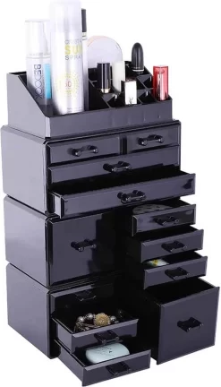 Omdat de Make-up Organizer met Lage veel lades heeft, kun je veel make-up erin opbergen. Daarbij komt ook nog dat de lades verschillende groottes heeft waardoor je ook grote make-up producten kunt opruimen.