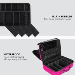 Deze multifunctionele opbergtas voor onder andere make-up, nagel accessoires of kappers benodigdheden heeft veel verschillende opbergmogelijkheden. De opbergtas bestaat uit verstelbare vakken. Verder is de tas stevig en praktisch en kan je hierdoor ook al je materialen en accessoires erin vervoeren. De opbergtas kan dan ook op meerdere manieren worden gedragen. De schouderband kan namelijk op verschillende manieren aan de tas worden bevestigd.