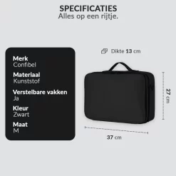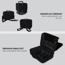 Deze multifunctionele opbergtas voor onder andere make-up, nagel accessoires of kappers benodigdheden heeft veel verschillende opbergmogelijkheden. De opbergtas bestaat uit verstelbare vakken. Verder is de tas stevig en praktisch en kan je hierdoor ook al je materialen en accessoires erin vervoeren. De opbergtas kan dan ook op meerdere manieren worden gedragen. De schouderband kan namelijk op verschillende manieren aan de tas worden bevestigd.