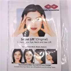 De Facelift tape wordt aangebracht op de huid en kan worden gebruikt om de huid te liften en de gezichtslijnen te strakker te maken. Door de tape op de huid te plakken en vervolgens te trekken, kan het gezicht strakker worden gemaakt en ontstaat er een jeugdige uitstraling.
