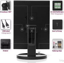 - Werkt op USB of batterijen (4x AAA)