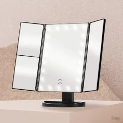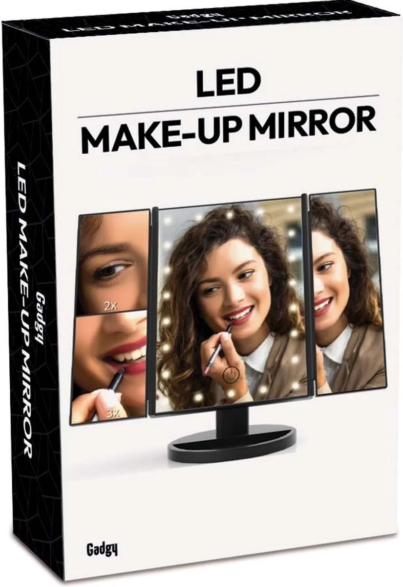 Met de Gadgy Make Up Spiegel met verlichting zit je make-up voortaan altijd goed. Deze spiegel bevat dimbare ledverlichting, waardoor je gezicht altijd perfect belicht is en je nooit meer een detail mist. Door het drieluik ontwerp is de spiegel inklapbaar en gemakkelijk mee te nemen. De verlichting werkt ook op batterijen, waardoor je de spiegel overal kunt neerzetten.