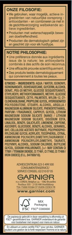 Met haar nieuwe formule geeft de BB cream van Garnier je nu tot 12u lang** een perfect ogende huid zonder bij te werken, zelfs in intense dagelijkse situaties: bij stress, warmte of contact van de handen op het gezicht, van ’s morgens tot ’s avonds. Deze 5-in-1 verzorging hydrateert tot 24u* en is verrijkt met grapefruit extract en vitamine C die zorgen voor een stralende en heldere teint. Het UV-filter SPF 15 helpt de huid beschermen tegen UV-stralen. Breng de BB-cream aan als een gewone dagverzorging op een gereinigde huid.