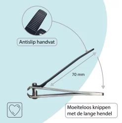 Naast dat het functioneel is, ziet de nagelknipper er ook nog mooi uit. De zwart gecoate hendel en de twee fijn geslepen snijbladen geven een modern gevoel.
