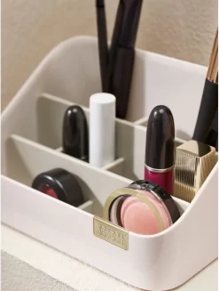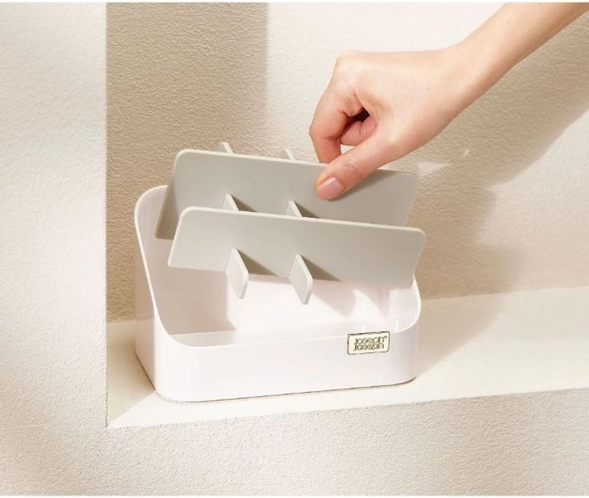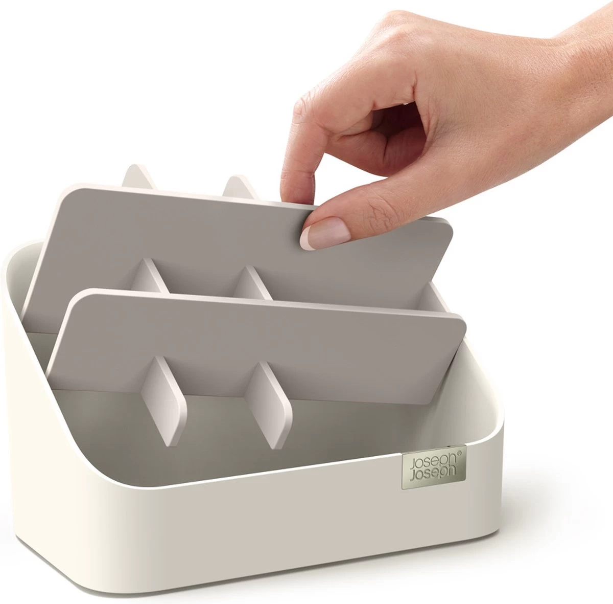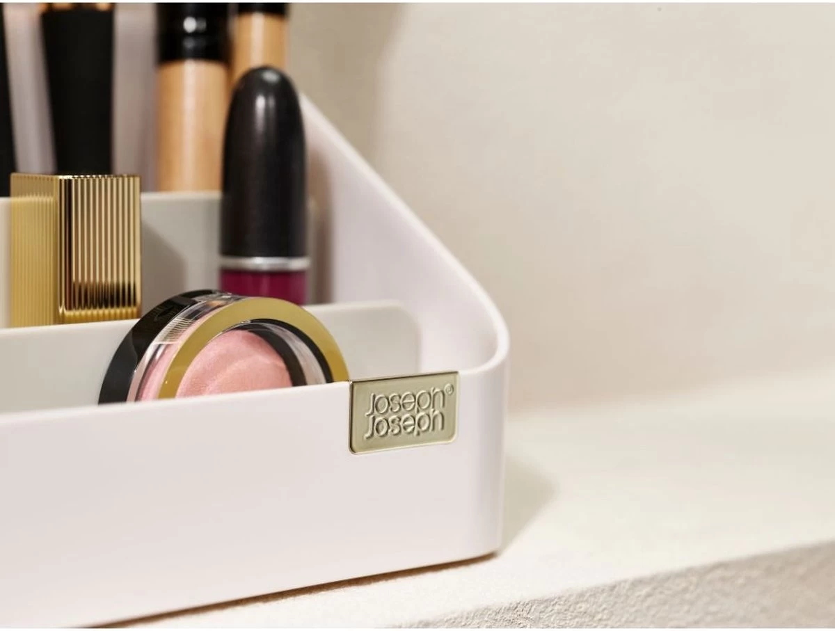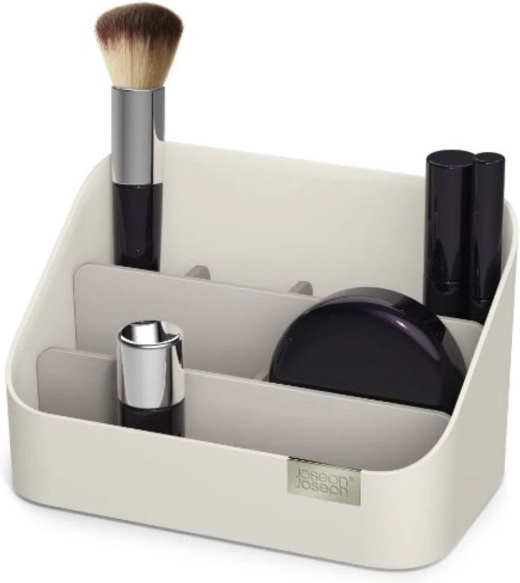 Door de verwijderbare verdelers kun je niet alleen je make-up display goed schoonhouden, je kunt ook je eigen vakjes maken. Wil je graag kleine make-up producten zoals kwasten en lipsticks opbergen kan dat in een van de negen vakjes. Maar wil je een potje poeder of een breed foundation flesje kwijt kun je gemakkelijk een van de verdelers uit de make-up standaard halen. Is deze make-up kwastenhouder nog niet groot genoeg voor al jouw verzorgingsproducten dan kun je verder kijken in de Viva collectie van Joseph Joseph voor een aanvullende organizer.