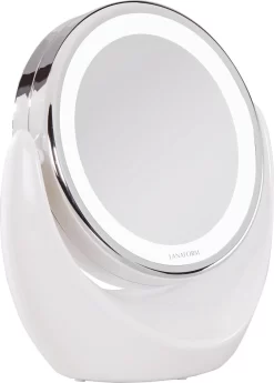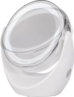 De LED Mirror X10 van LANAFORM® is een 10X vergrotende dubbelzijdige spiegel (X1/X10) met led verlichting. Deze designspiegel is ideaal voor make-up en gezichtsverzorging en verdient een ereplaats in uw interieur. De 360° draaiende dubbelzijdige spiegel is aan een kant 10X vergrotend. Hij heeft ook een led verlichting en heeft een diameter van ongeveer 11 cm.