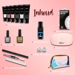 De Luneya Polygel Kit is een complete set waarmee jij jouw droomnagels kunt creëren. In de Polygel Kit zit alles wat u nodig heeft om professionele nagels gemakkelijk aan te brengen. Deze gel nagels blijven 2 tot 4 weken zitten en hebben onmiddelijk een glanzend effect. De polygel kit is geschikt voor professionele schoonheidsspecialisten maar ook voor beginners!