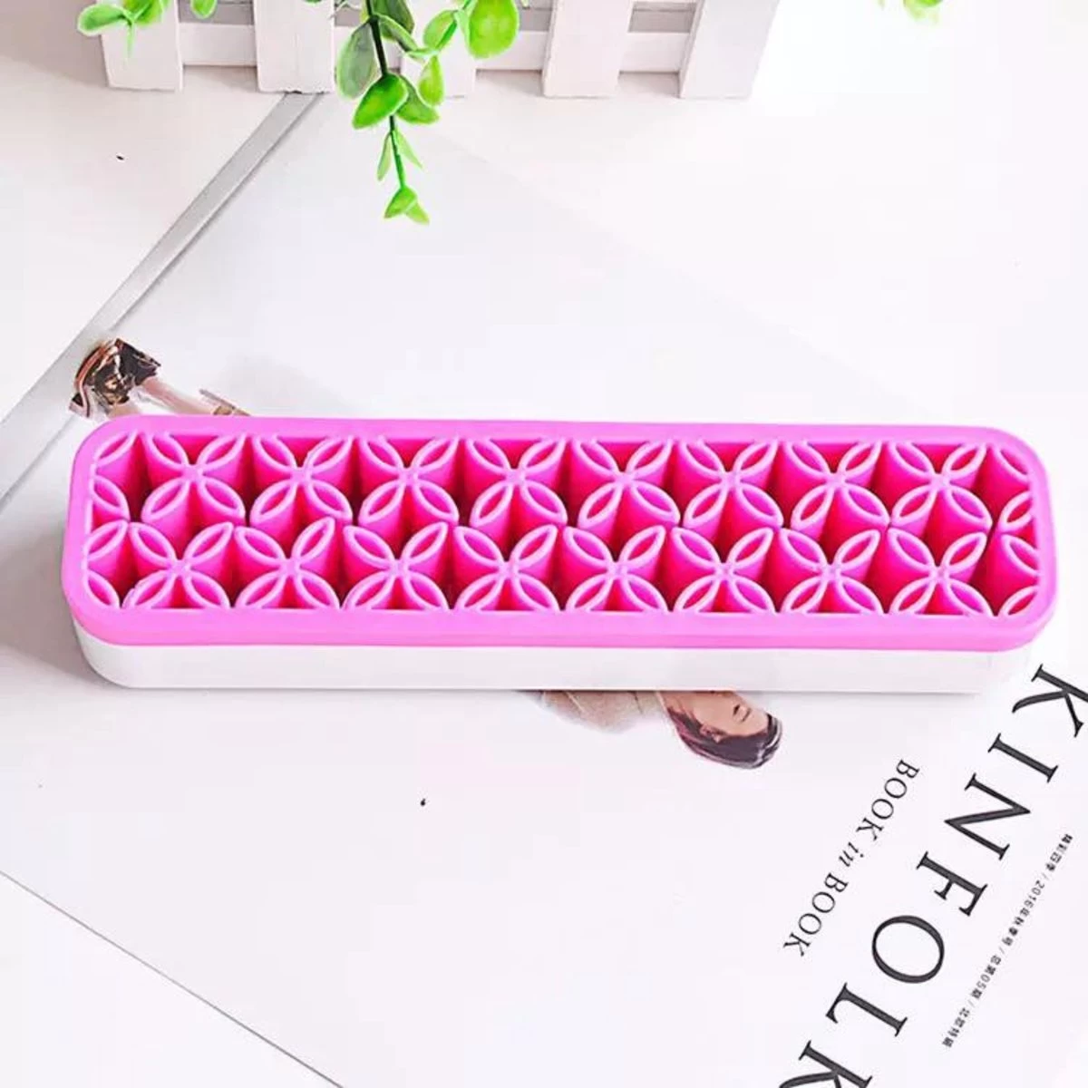 Iedereen wil toch georganiseerd te werk gaan? Met deze siliconen houder van Pazzo Goods gaat dat zeker lukken. De handige methode om je borstels, kwasten, pennen, scharen op te bergen. De houder is verkrijgbaar in 4 kleuren Grijs, Roze, Watermelon en Paars.