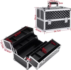 - Afmetingen: met een ruimtebesparende opbergstructuur en een afmeting van 34,7 x 22,2 x 25 cm (l x b x h) kan deze gereedschapskoffer aan normale cosmetische eisen voldoen, wat een praktische keuze is.