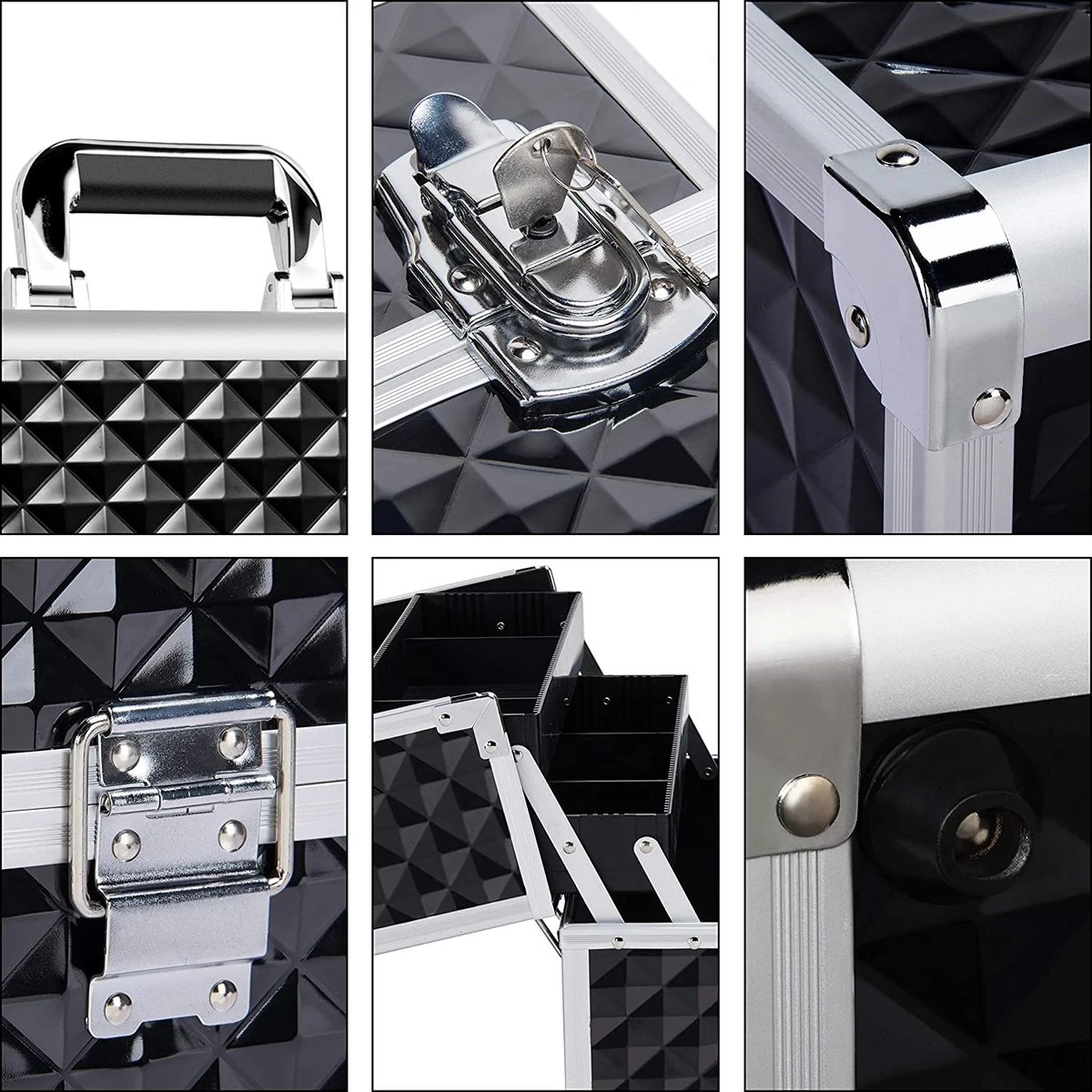 - Veiligheid: een slot samen met 2 sleutels voor de bevestiging en extra veiligheid van je cosmetica en gereedschap. Bovendien wordt een zachte voering met fluwelen textuur gebruikt om je opslag extra bescherming tegen beschadigingen te bieden.