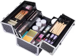 - Solide en duurzaam – de make-upkoffer is gemaakt van kunststof en aluminium en robuust genoeg voor jarenlang veelvuldig gebruik.