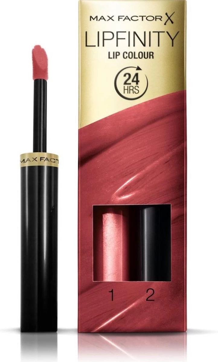 Max Factor Lipfinity Lip Colour is een langhoudende vloeibare lippenstift die ervoor zorgt dat jouw lippen tot wel 24 uur worden voorzien van een prachtige kleur. Het geheim van de Max Factor Lipfinity lipstick zit hem in de twee stappen. Stap 1: Breng de Lipfinity Lip Color aan op schone, droge lippen. Stap 2: Om de lippen te hydrateren en glans toe te voegen, breng vervolgens de transparante en vochtinbrengende topcoat aan. De Max Factor Lipfinity Lip Color blijft ook zitten als je een mondkapje draagt!