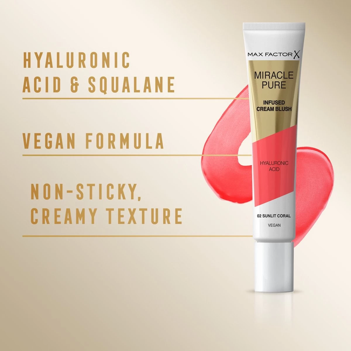 Zorg voor een vleugje kleur doordrenkt met zorg! Max Factor’s Miracle Pure Cream Blush bevat een vocht inbrengend complex dat opvult en hydrateert terwijl het een opbouwbare gloed aan je teint toevoegt.