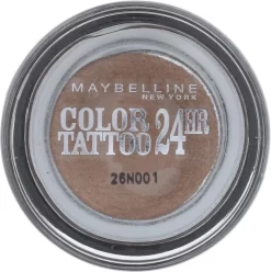 Maybelline New York introduceert de Color Tattoo oogschaduw. Deze ultra langhoudende Maybelline oogschaduw houdt tot 24 uur lang en is sterk gepigmenteerd. Hierdoor heb je gedurende de dag plezier van intense kleurstatements die je creëert met de Maybelline 35 On and on Bronze oogschaduw.