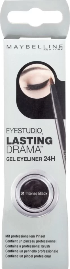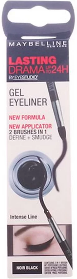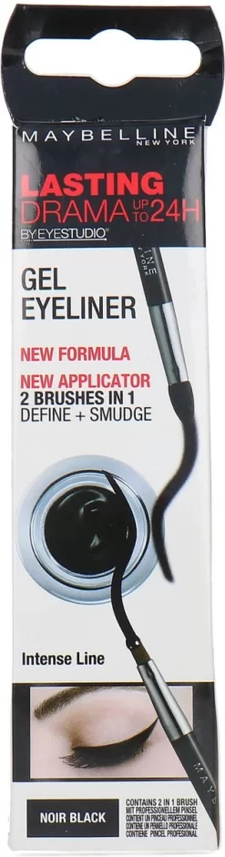 Met Maybelline’s Lasting Drama waterproof eyeliner zet je een intens zwarte lijn die de hele dag lang blijft zitten. Creëer dramatische wings met Maybelline’s gel eyelinerformule zonder oliën. De formule is waterproof, vlekbestendig en soepel aan te brengen. Oftalmologisch en dermatologisch getest, geschikt voor gevoelige ogen en lensdragers.