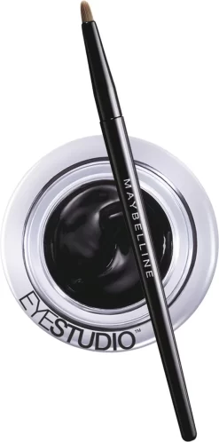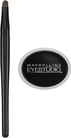 Maybelline New York Eye Studio Gel Liner 01 Black is een zwarte eyeliner met kwast en pot voor een dramatisch zwart effect.