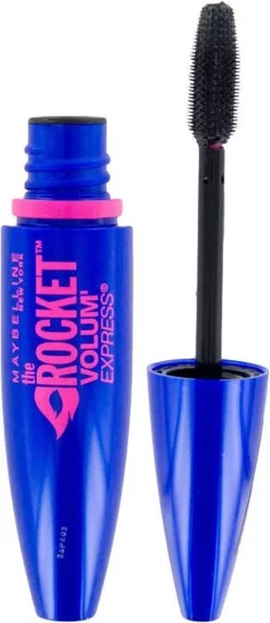 Maybelline New York The Rocket Very Black volume mascara geeft explosief volume in recordtijd! De supersonische borstel en latex-achtige formule creëren zichtbaar meer volume.