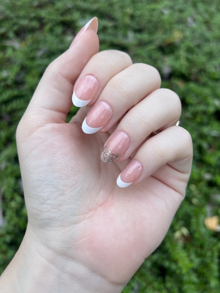 6. Plak de kunstnagel op je eigen nagel en houd even vast