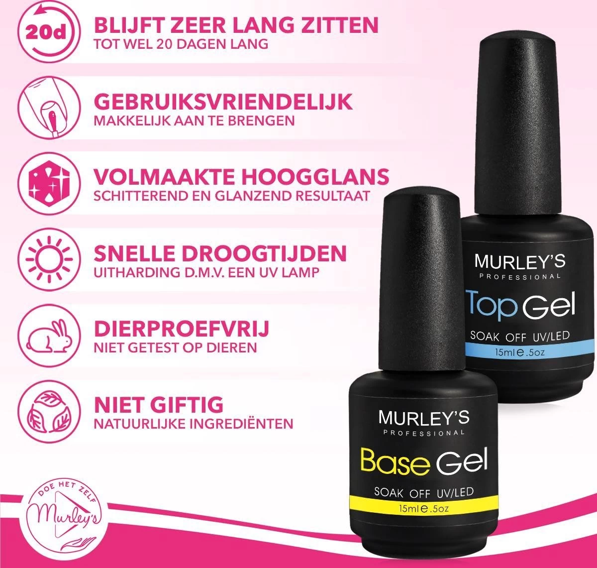 Voordelen MURLEY’s basecoat & topcoat gellak set: