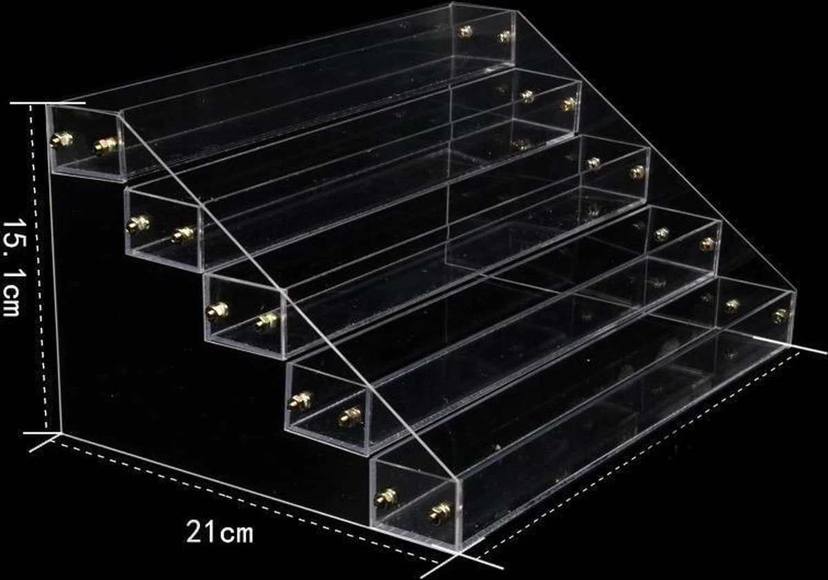 Door 5 verdiepingen met lange stroken in plaats van hokjes kun je veel verschillende vormen en maten nagellak kwijt. Door de strakke, neutrale uitstraling past deze display bij elk interieur. Maat 29.8x21x15.1 cm hoog. De houder kan gebruikt worden voor veel verschillende doeleinden. Denk aan een mooie display voor make-up, lippenstift, nagellak, sieraden of accessoires. De houder is gemaakt van doorzichtig plastic en daarom lichtgewicht en gemakkelijk te verplaatsen. De houder kan als mooie eyecatcher staan op een make-uptafel, kast of bureau.