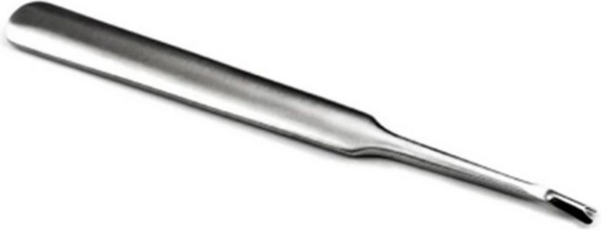 De metalen nagelriem remover wordt gebruikt voor nauwkeurig nagelriem trimmen en hybride polish verwijderen. Het heeft twee verschillende tips. De smallere, vlakkere tip verwijdert hybride lak van de nagelplaat, terwijl de andere ontworpen is om de nagelriemen naar binnen te duwen.