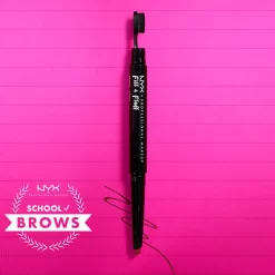 The boyfriend jeans van de wenkbrauwwereld is eindelijk realiteit. De dual-ended Fill & Fluff Eyebrow Pomade Pencil Brunette FFEP06 van NYX Professional Makeup beschikt over een intrekbare, druppelvormige pommade bullet voor het kleuren, plus een micro paddle borstel voor het blenden. Er bestaan acht matte kleuren met een gladde, wax-achtige structuur en gepigmenteerde afwerking. Perfect voor het tekenen van de effortless ”boy brow” look en voor het opbouwen van volume. Deze brow duo is precies wat jouw make-uproutine nodig heeft to up your brow game.