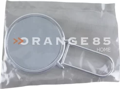 Orange85 make-up spiegel. De ronde make-up spiegel is vergrotend, waardoor je beter zicht hebt. De grootte van de spiegel is 14.5 centimeter. De spiegel is zilver en het materiaal waarvan hij gemaakt is is glas.