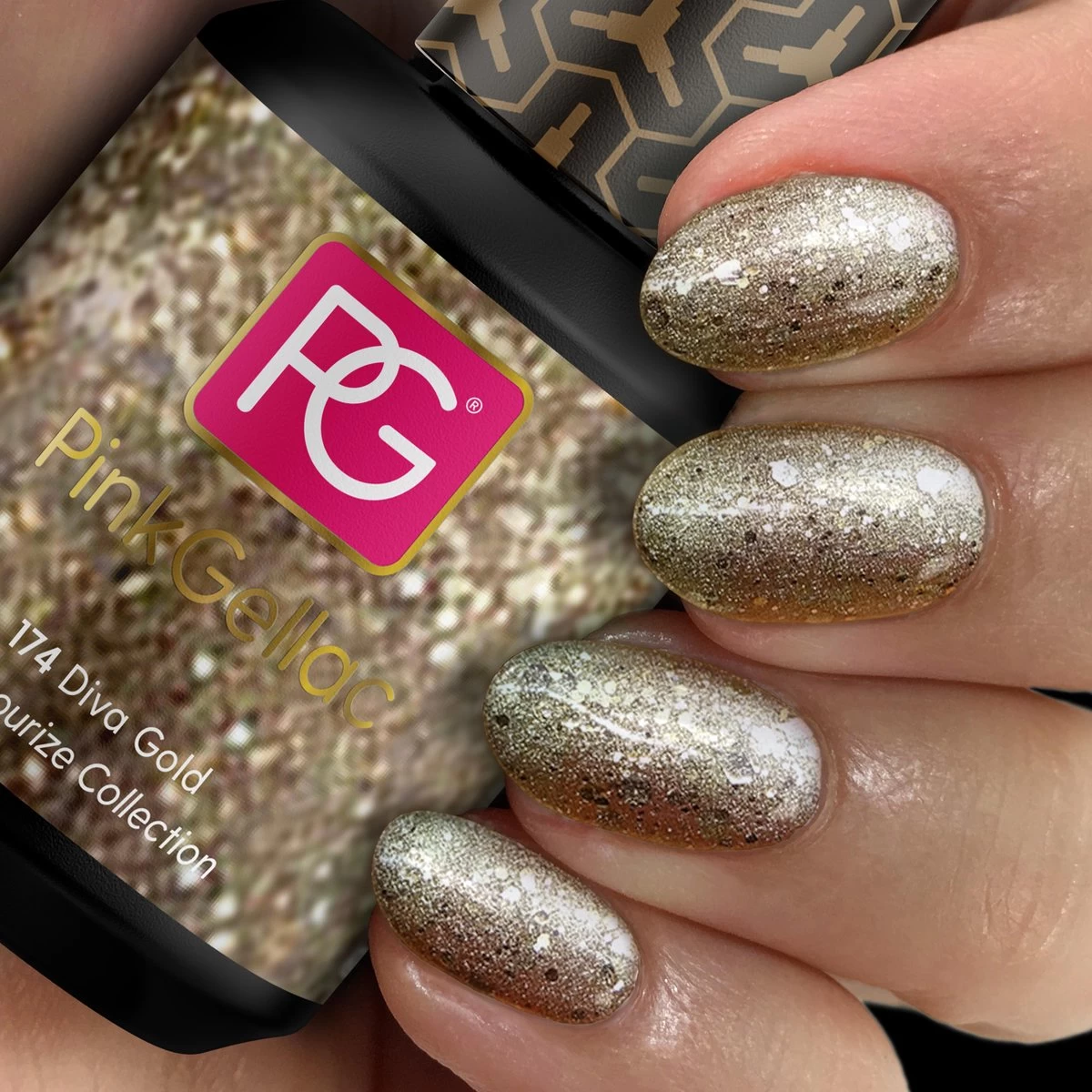 Pink Gellac | Diva Gold – Gellak – Vegan – Goud – Glitter – 15ml