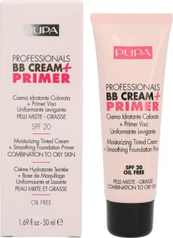 PUPA BB Cream + Primer Oily Skins is een BB cream én primer speciaal voor de gecombineerde en vette huid. De gezichtscrème hydrateert de huid en egaliseert oneffenheden. De PUPA BB Cream + Primer Oily Skins is een BB Cream voor de gecombineerde en vette huid. De crème hydrateert de huid en helpt de huid te egaliseren. Het resultaat is een stralende en verzorgde huid! De aanwezige SPF 20 beschermt de huid tegen de schadelijke Uv-straling van de zon. Deze veelzijdige BB Cream maakt de huid mooi en helpt vlekjes in de huid te verminderen. Kortom, een perfecte gezichtscrème voor het beste resultaat!