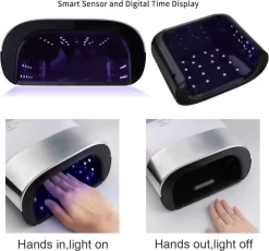 UV nagel producten als UV-gel of UV-coating hebben normaal lange tijd nodig om te drogen. Met deze krachtige UV LED lamp nageldroger kunt u snel en efficiënt droge nagels krijgen en de wachttijd sterk verminderen. Doordat deze lamp 48 Watt heeft drogen uw nagels nog sneller. De UV LED lamp gaat automatisch aan als u uw hand eronder legt. Ook gaat hij automatisch uit als u uw hand uit de lamp haalt.
