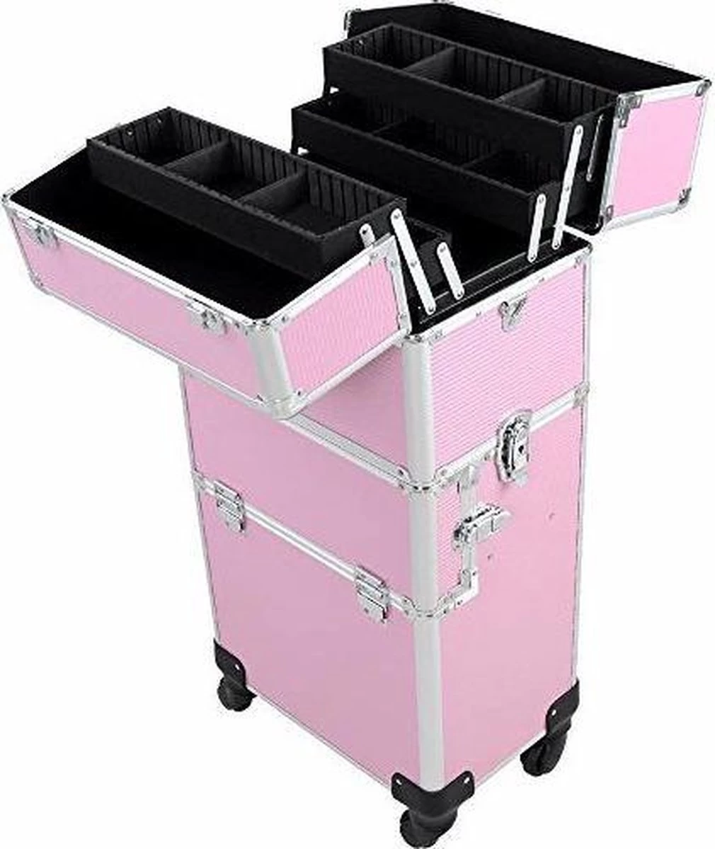 Zeer ruime tweedelige trolley op 4 zwenkwielen, welke via een kliksysteem eenvoudig te verwijderen/te vervangen zijn. De trolley is tevens voorzien van een uitschuifbaar handvat en wordt geleverd met een extra deksel. Ideaal voor schoonheidsspecialisten en stylisten, maar ook voor andere beroepen zou deze trolley een uitkomst zijn.