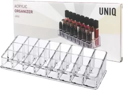 Deze organiser voor lippenstiften is een stijlvolle, moderne manier om uw bureau, lades en schijfruimte georganiseerd en netjes te houden. U kunt er niet alleen lippenstiften, nagellak en cosmetica in opbergen, maar ook kleine sieraden en andere accessoires.