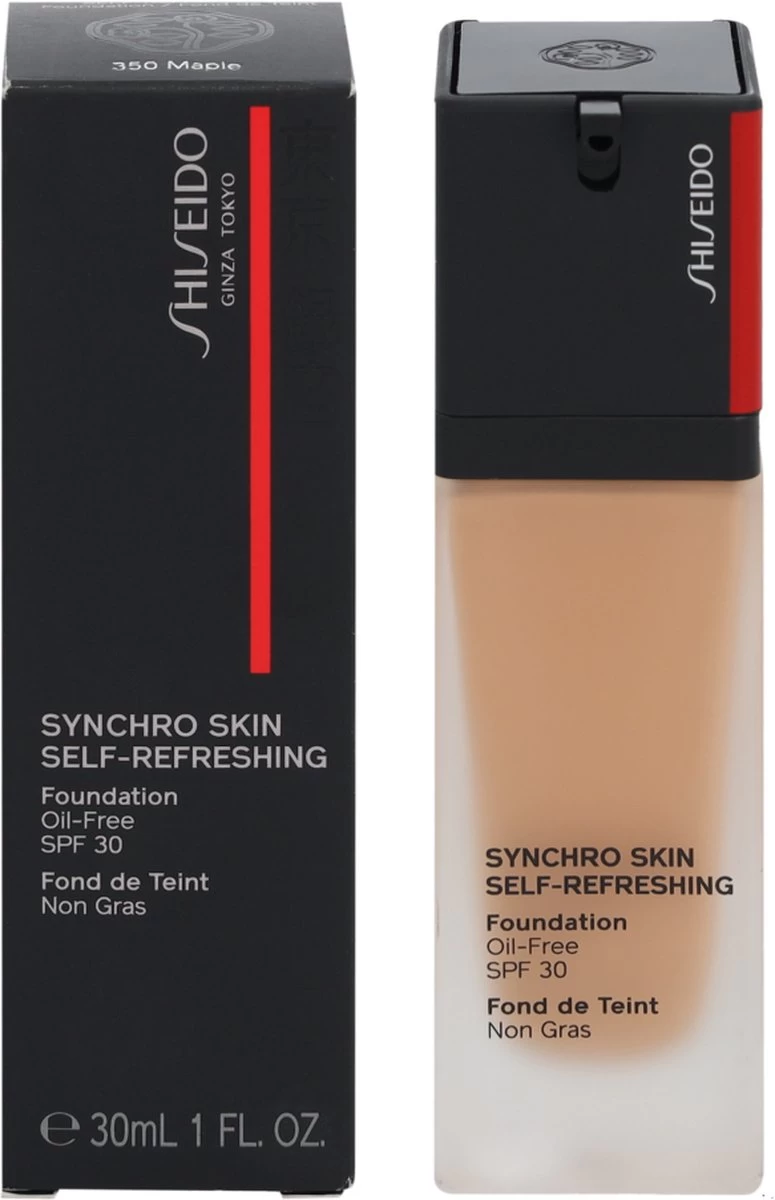 Vloeibare Foundation Synchro Skin Self-Refreshing Shiseido 350-maple (30 ml) is wat jij nodig hebt om jezelf extra in de verf te zetten! Probeer de kwaliteit uit van 100% originele Shiseido producten en laat echte professionals je schoonheid accentueren.