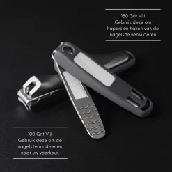 - Scherp en nauwkeurig knippen: De scherpe en nauwkeurige mesjes op zowel de grote als de kleine teennagelknipper geven een zeer precieze snede zonder de nagel te breken, eraan te trekken of te scheuren. En de twee ingebouwde vijlen kunnen u helpen om gladde nagels te krijgen. Hiermee krijgt u met minimale inspanning een resultaat in een zuivere snede, in plaats van gekartelde randen achter te laten, nagels te scheuren of veel te veel druk te vereisen om te gebruiken.